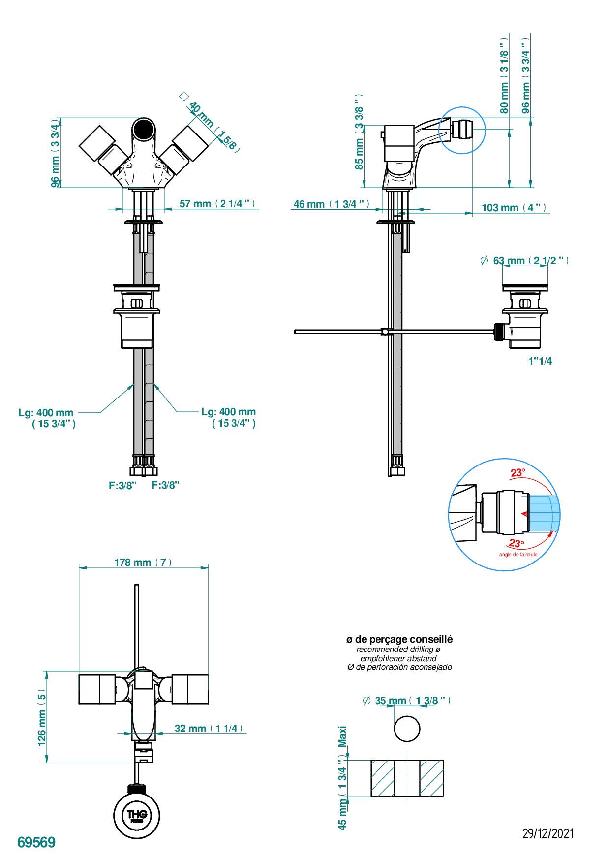 Смеситель для биде THG Montaigne marbre Grand Antique на одно отверстие с поворотным аэратором и донным клапаном