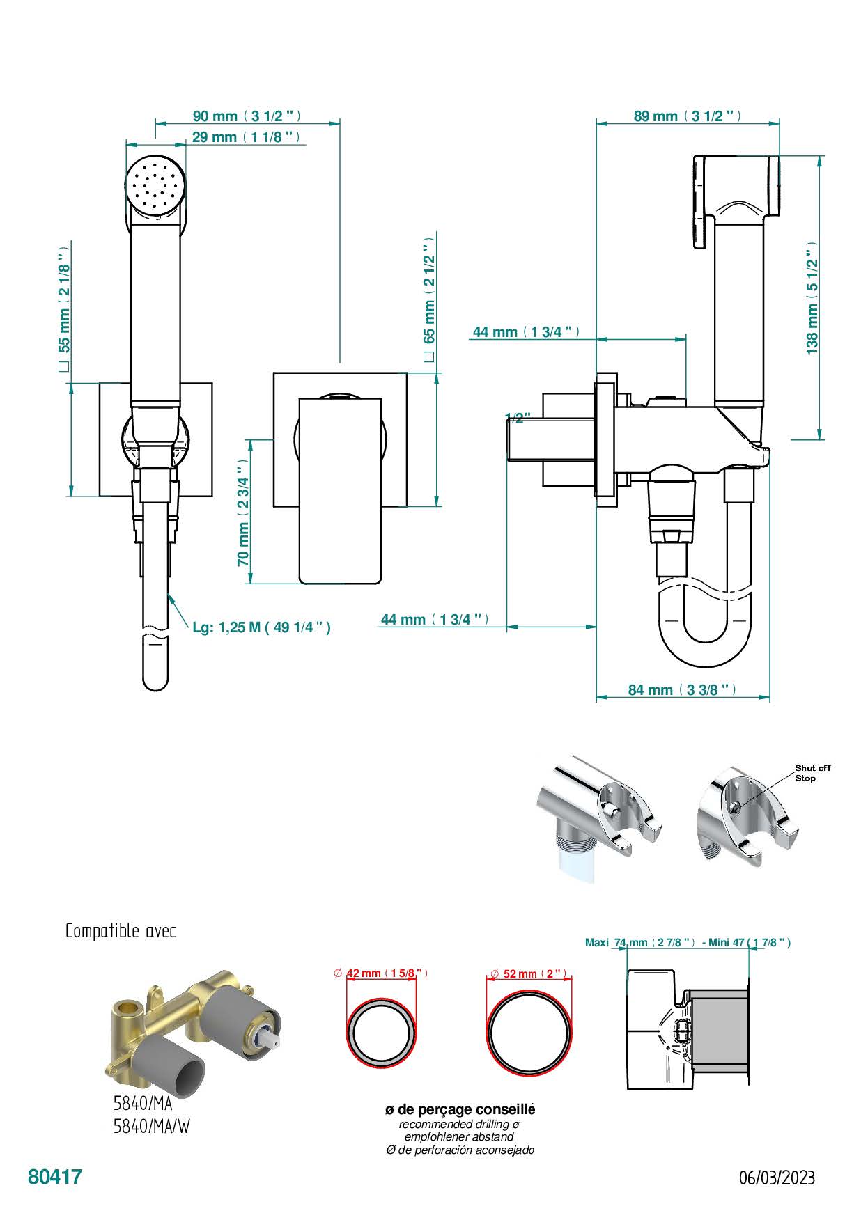 Комплект для душа THG Soho, включающий смеситель, армированный шланг 1 м 25 см, ручной душ с курковым распылителем, выход из стены и предохранительный запорный клапан