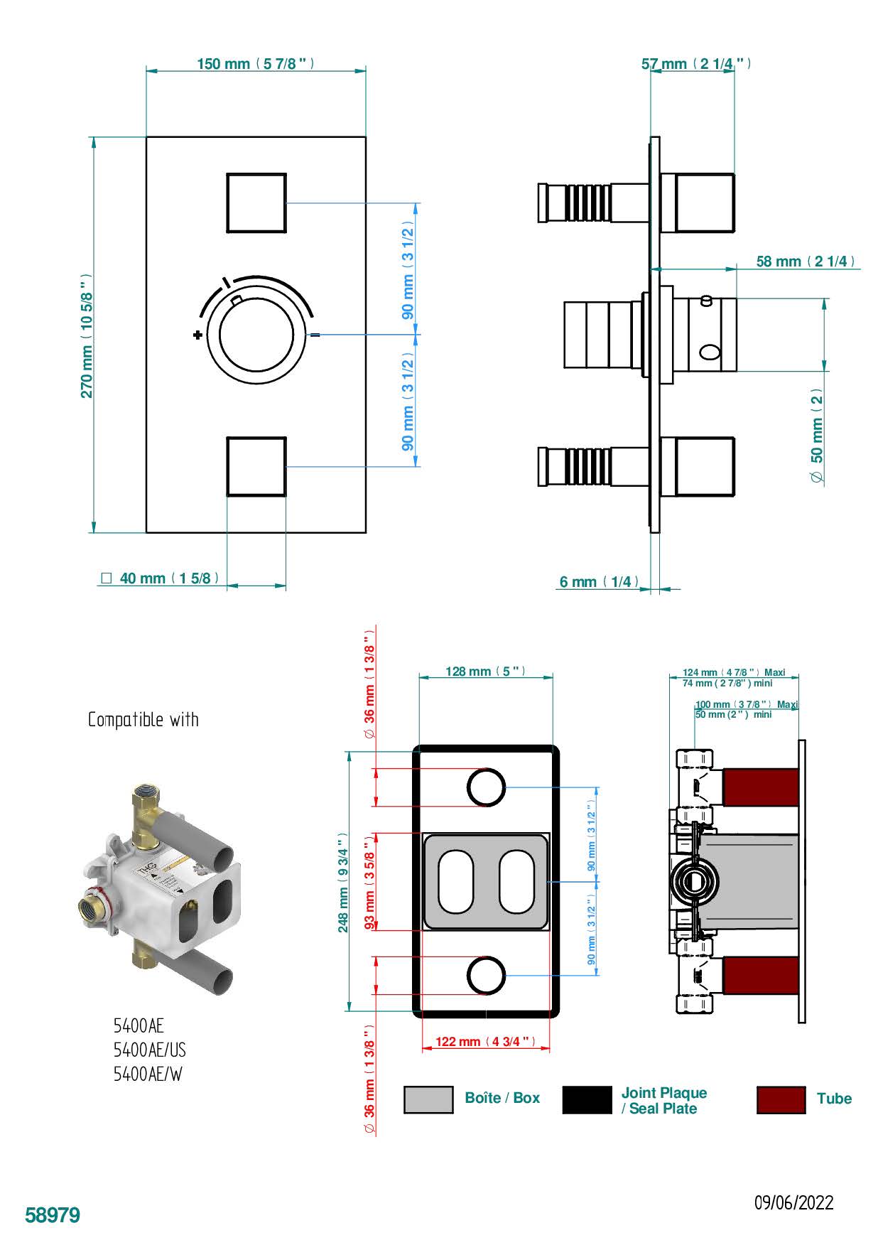 Накладка THG Soho с ручкой регулировки температуры и двумя маховиками для термостатического смесителя 5400AE