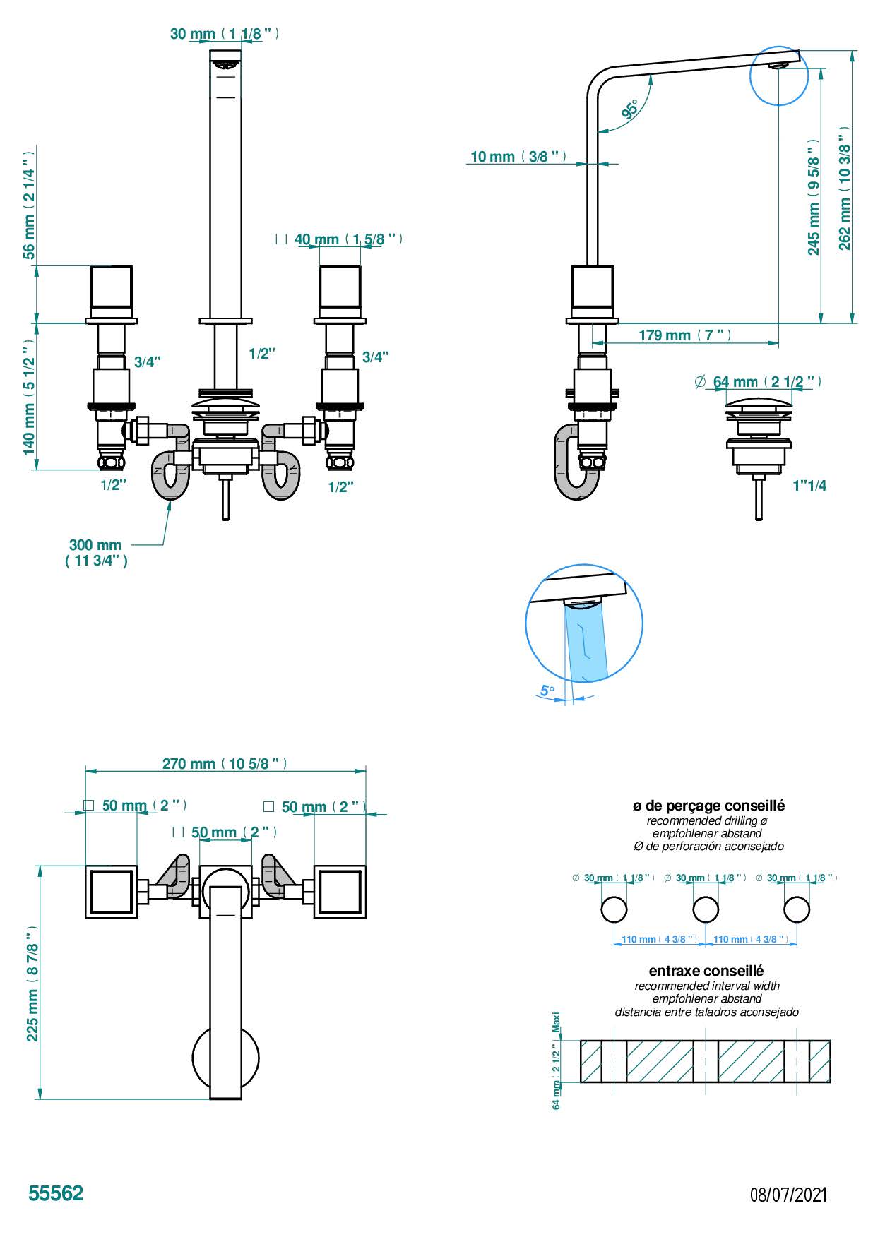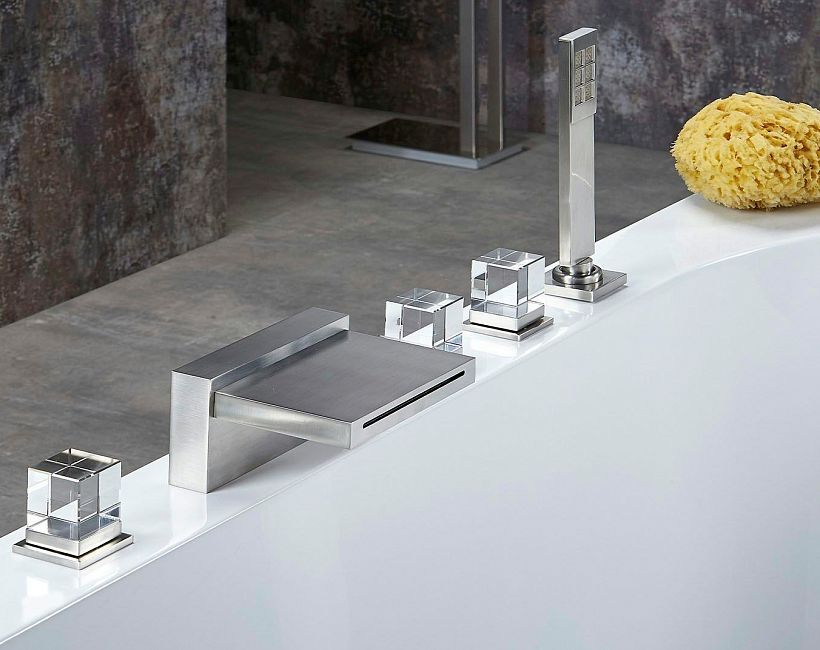 Смеситель для раковины THG Soho на три отверстия устанавливаемый на борту с донным клапаном