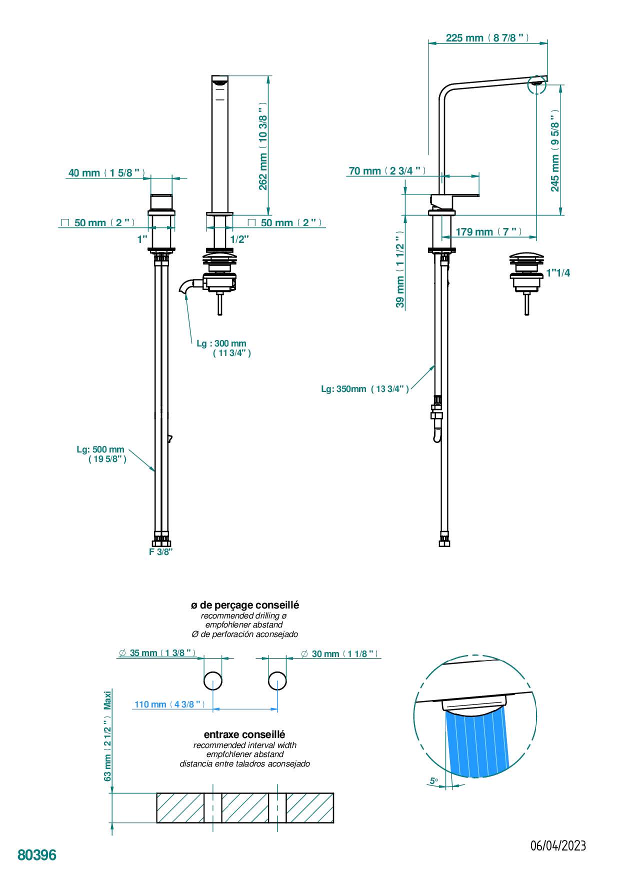 Смеситель THG Soho с прогрессивным картриджем для раковины на 2 отверстия с краном, без донного клапана