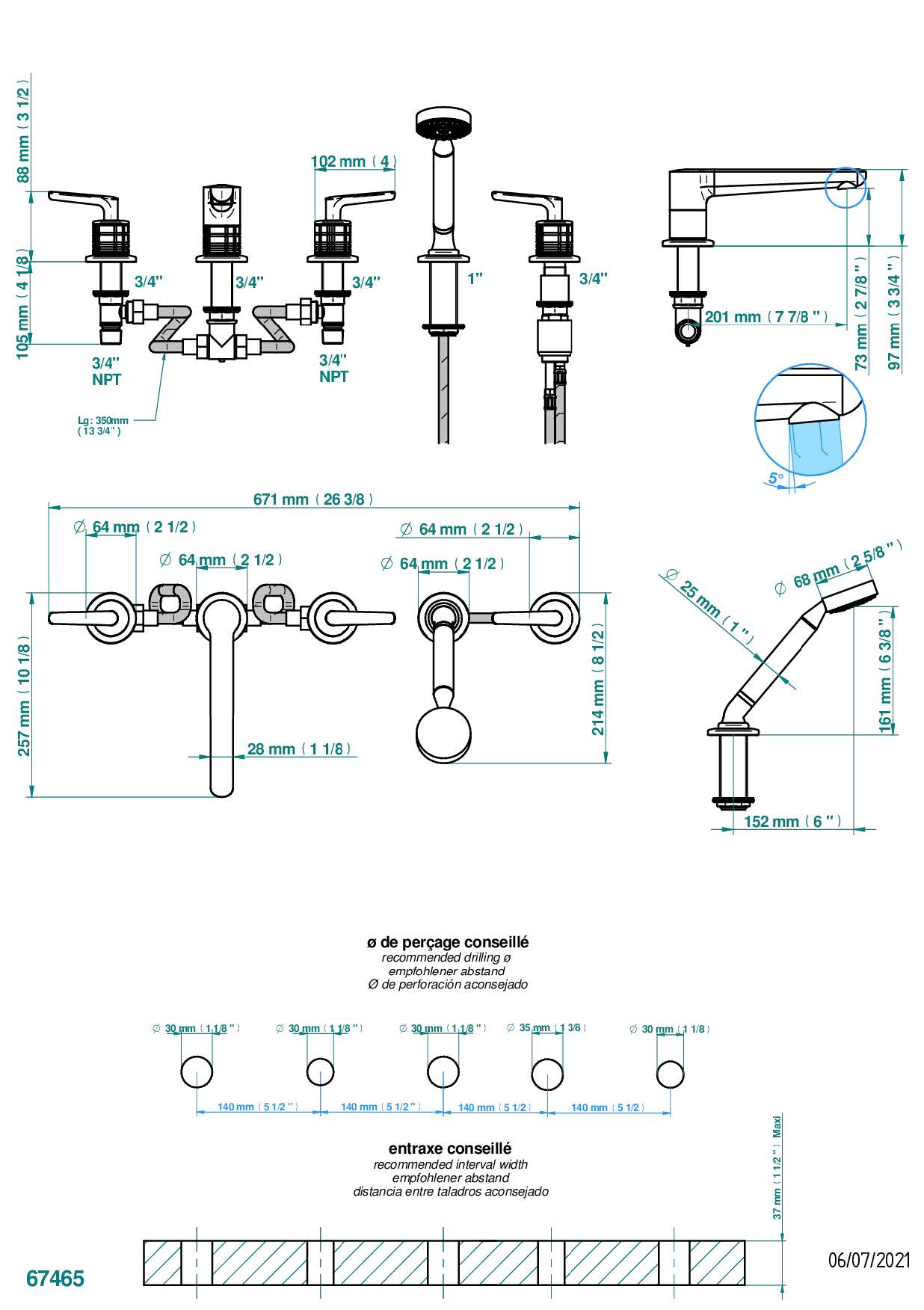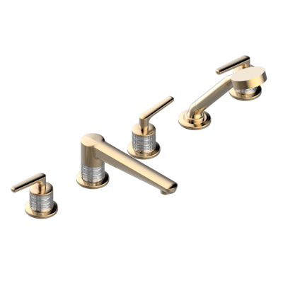 Смеситель THG System Cristal a manettes устанавливаемый на борту ванны на 5 отверстий с душем, керамическим смесителем, 2 вентилями ¾" и изливом СУПЕР ГОЛИАФ