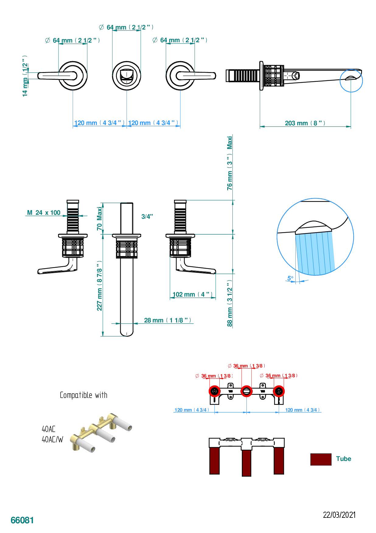 Смеситель THG System Cristal a manettes Внешняя часть, в стену для раковины на три отверстия с изливом ГОЛИАФ