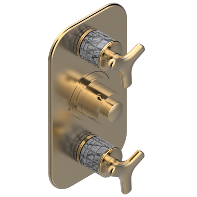 Накладка THG System Howlite с ручкой регулировки температуры и двумя маховиками для термостатического смесителя 5400AE коллекции Смесители THG System Howlite можно купить по розничной цене в нашем шоу-руме в Москве по адресу ул. Дениса Давыдова, д. 4 или через наш интернет-магазин StudioArdo.