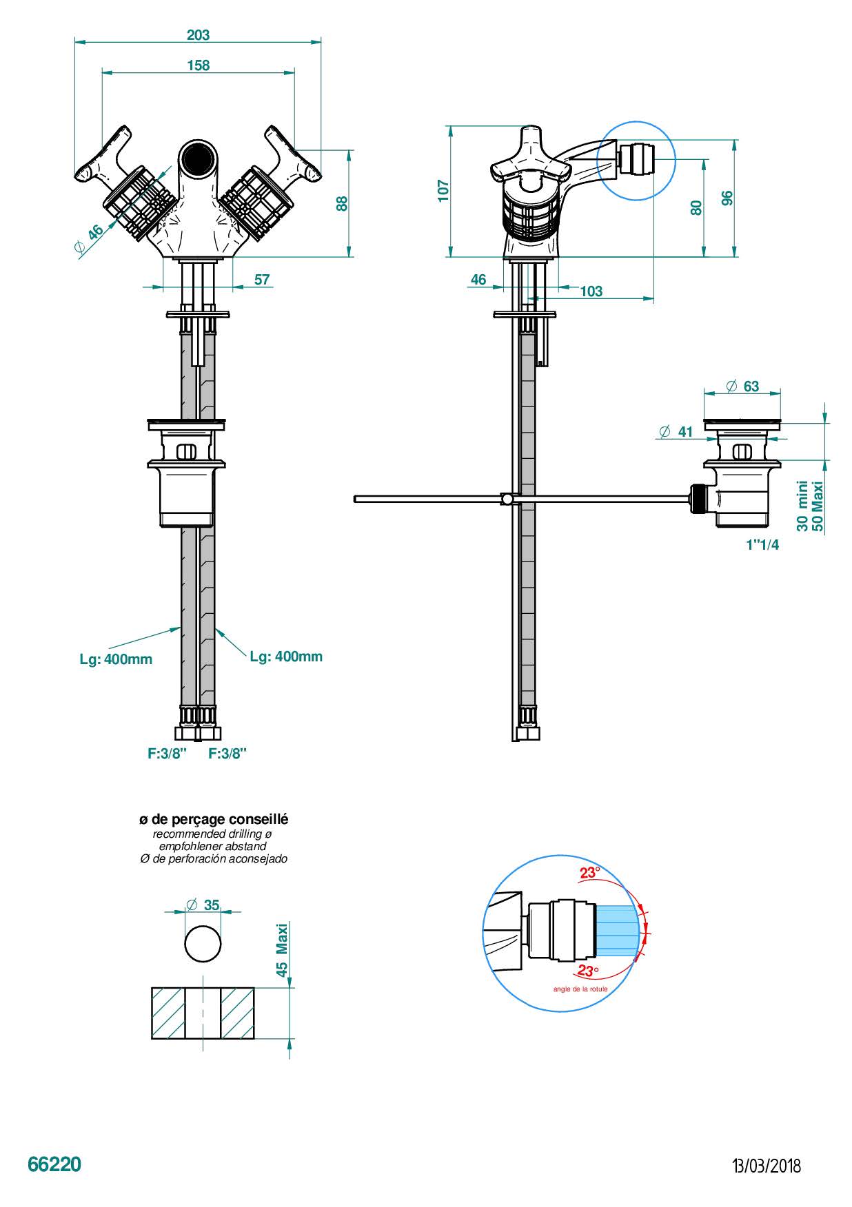 Смеситель для биде THG System Howlite на одно отверстие с поворотным аэратором и донным клапаном
