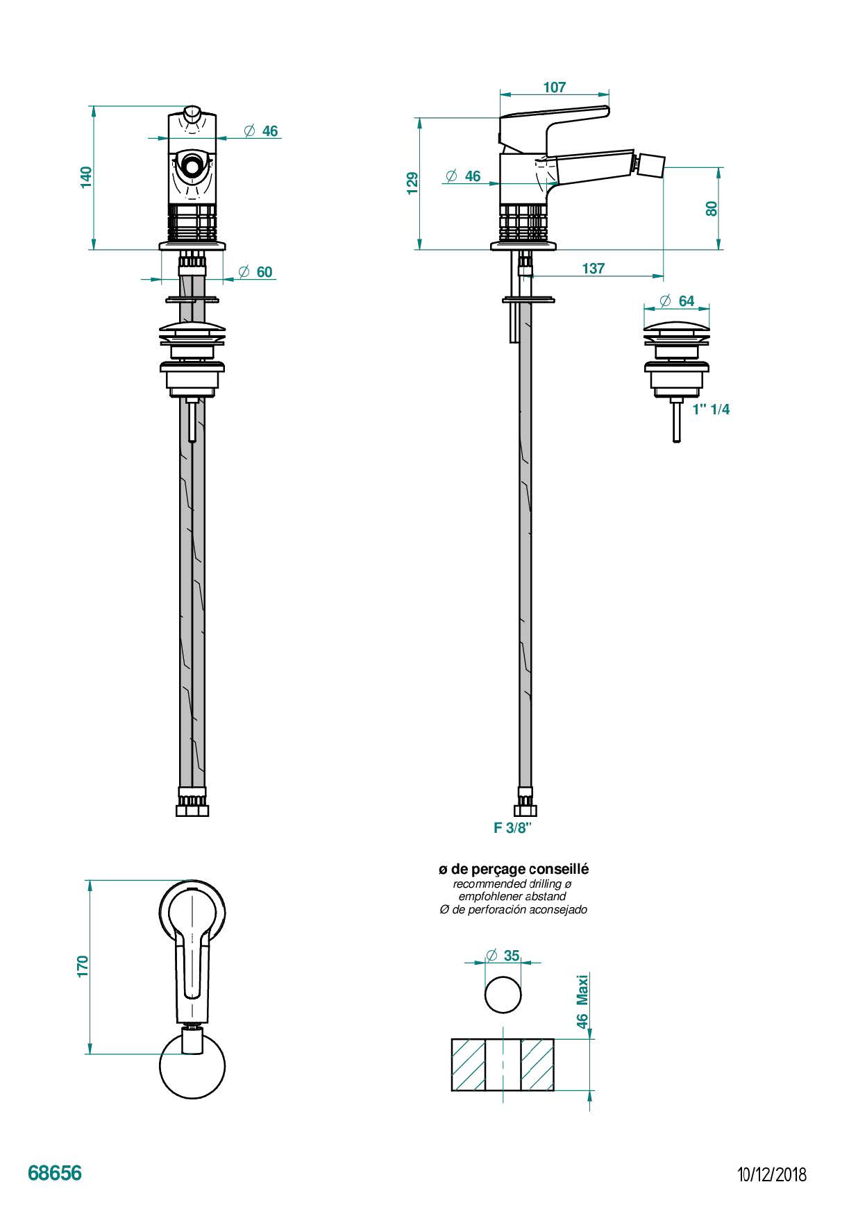 Смеситель THG System Howlite однорычажный для биде с донным клапаном