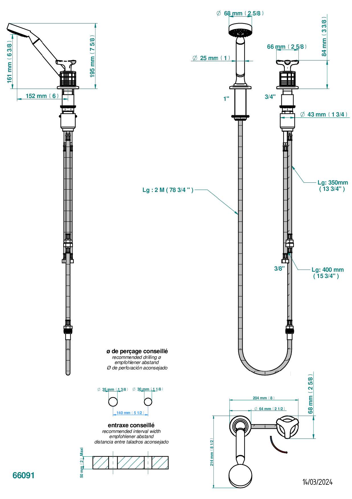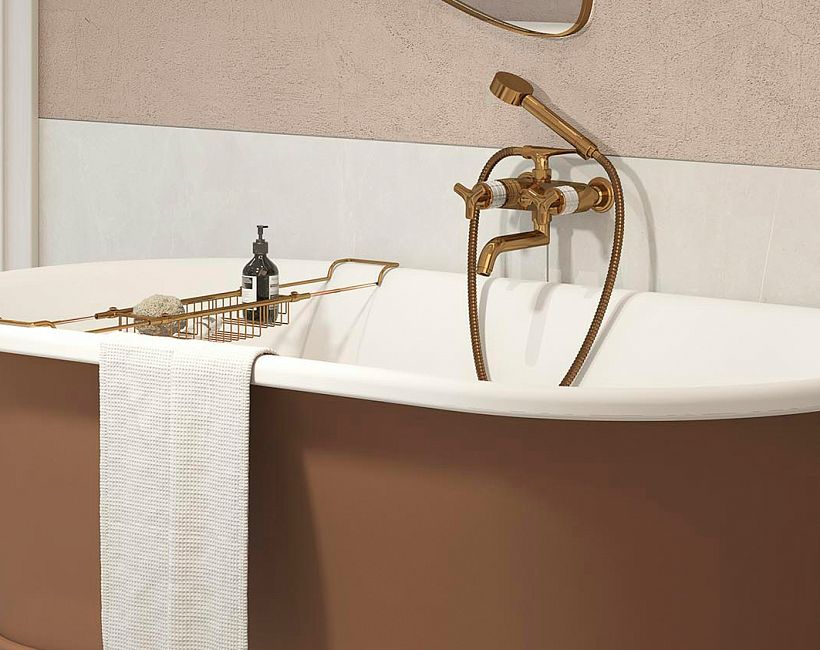 Смеситель THG System Howlite устанавливаемый на борту с ручным душем с ручкой одновременной регулировки – потока/температуры