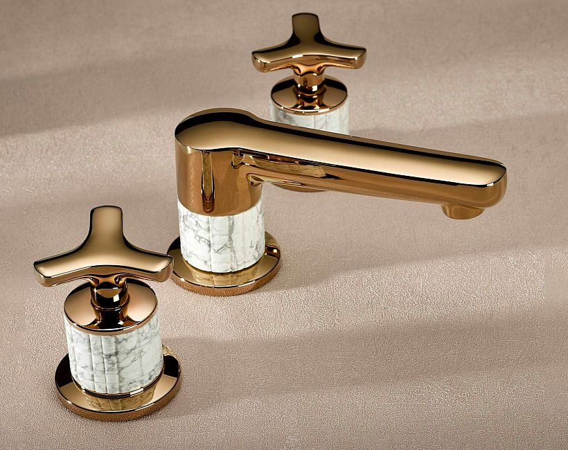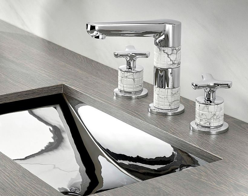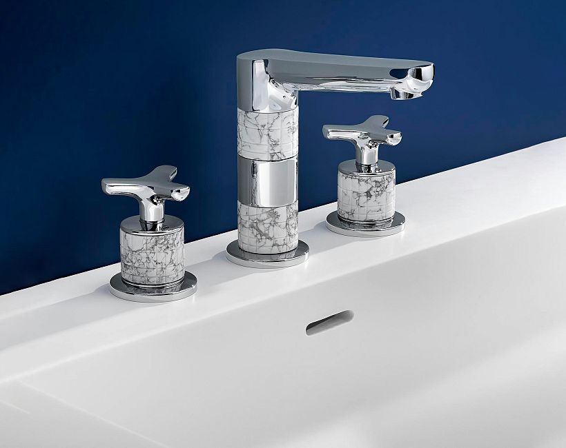 Смеситель THG System Howlite устанавливаемый на борту с ручным душем с ручкой одновременной регулировки – потока/температуры коллекции Смесители THG System Howlite можно купить по розничной цене в нашем шоу-руме в Москве по адресу ул. Дениса Давыдова, д. 4 или через наш интернет-магазин StudioArdo.