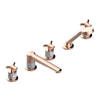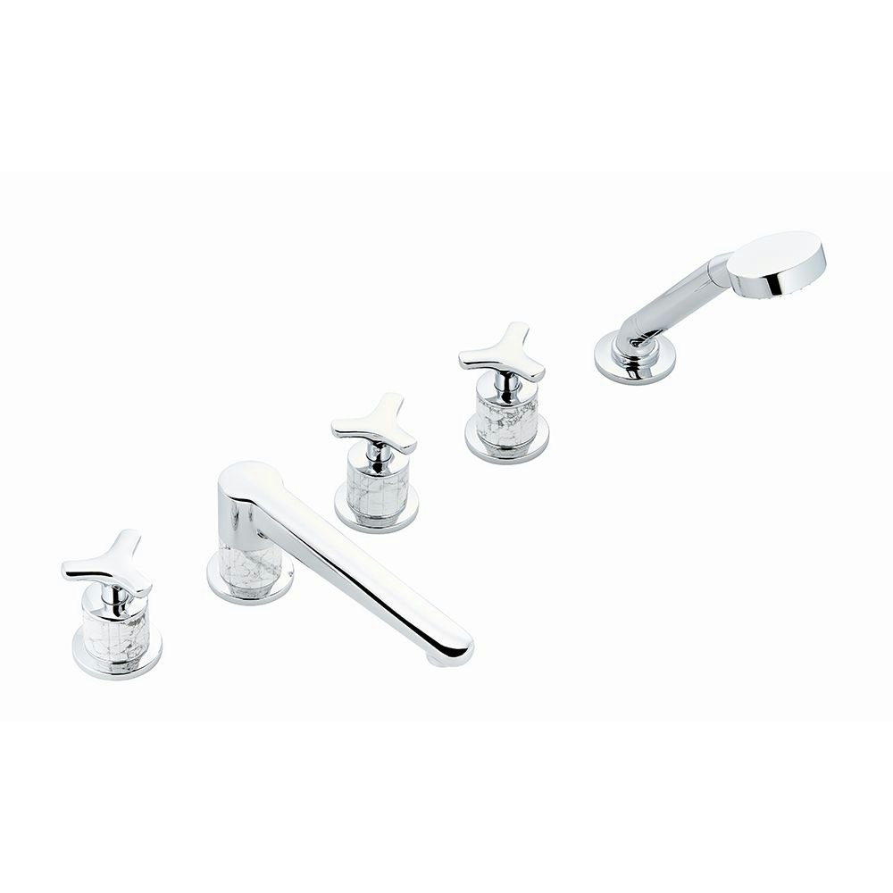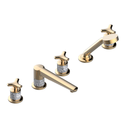 Смеситель THG System Howlite устанавливаемый на борту ванны на 5 отверстий с душем, керамическим смесителем, 2 вентилями ¾" и изливом СУПЕР ГОЛИАФ