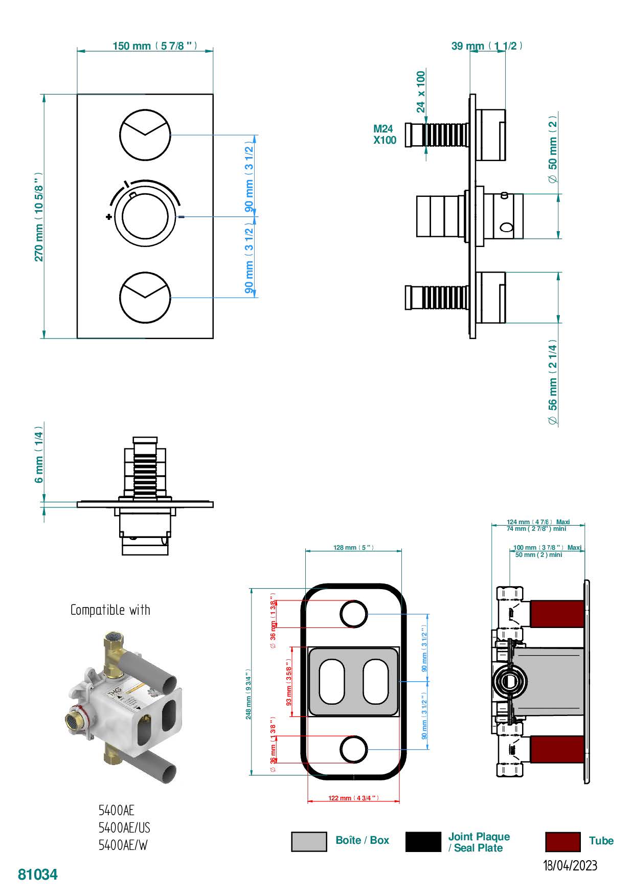 Накладка THG Yoko Delta с ручкой регулировки температуры и двумя маховиками для термостатического смесителя 5400AE