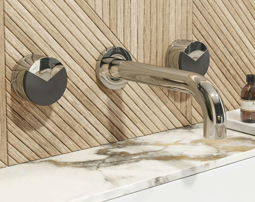 Накладка THG Yoko Delta с ручкой регулировки температуры и двумя маховиками для термостатического смесителя 5400AE коллекции Смесители THG Yoko Delta можно купить по розничной цене в нашем шоу-руме в Москве по адресу ул. Дениса Давыдова, д. 4 или через наш интернет-магазин StudioArdo.