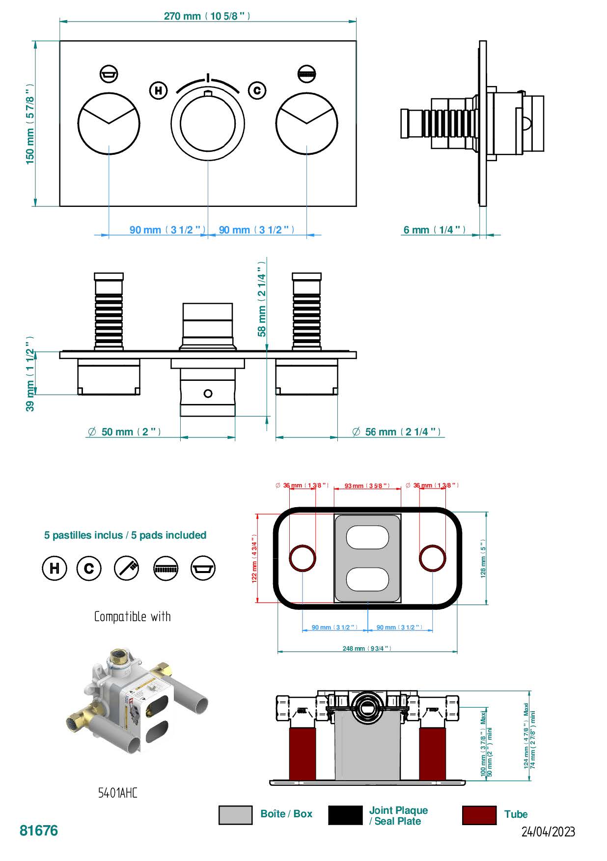 Накладка THG Yoko Delta с ручкой регулировки температуры и двумя маховиками для термостатического смесителя с горизонтальной установкой