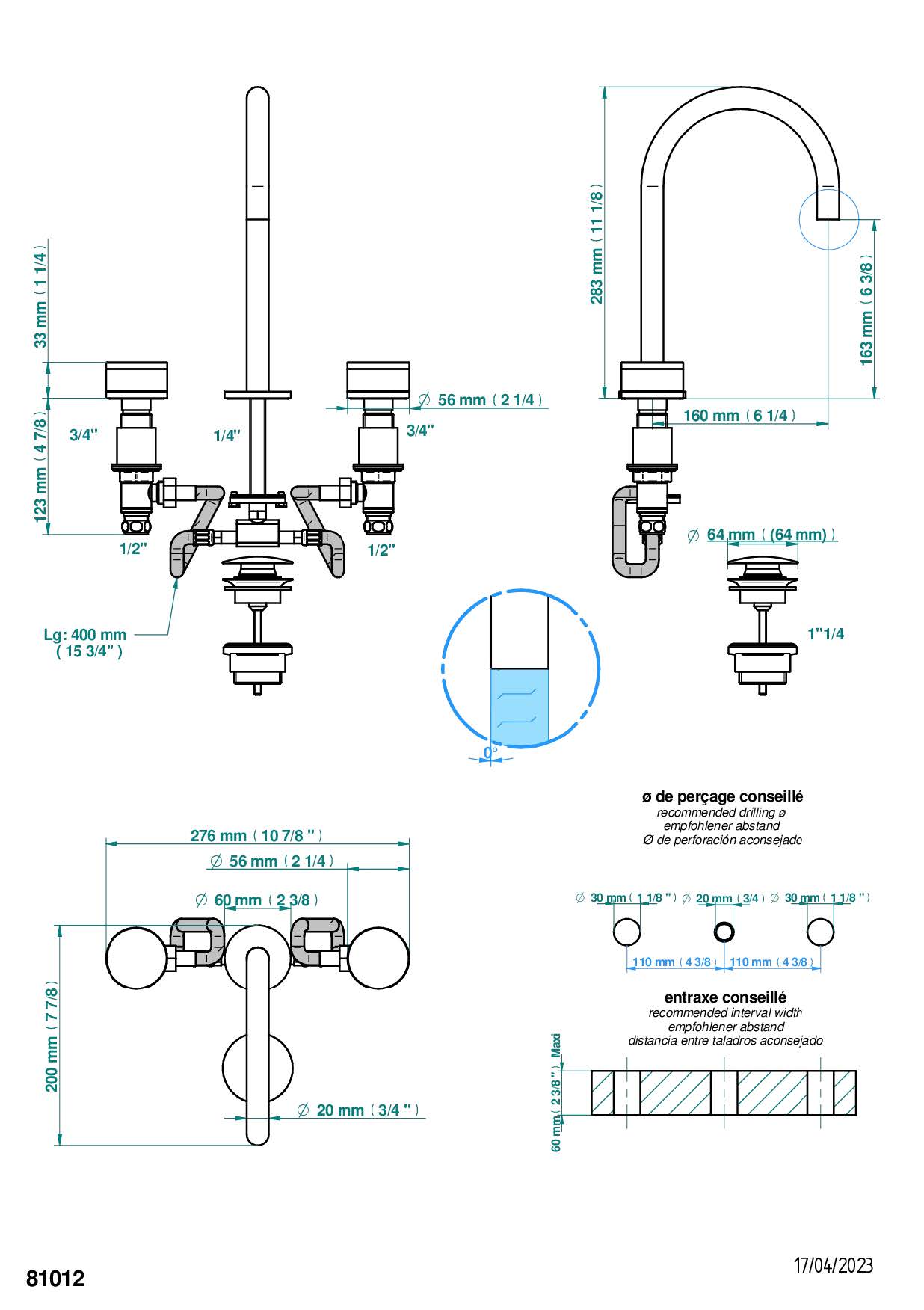 Смеситель для раковины THG Yoko Color на три отверстия устанавливаемый на борту с донным клапаном