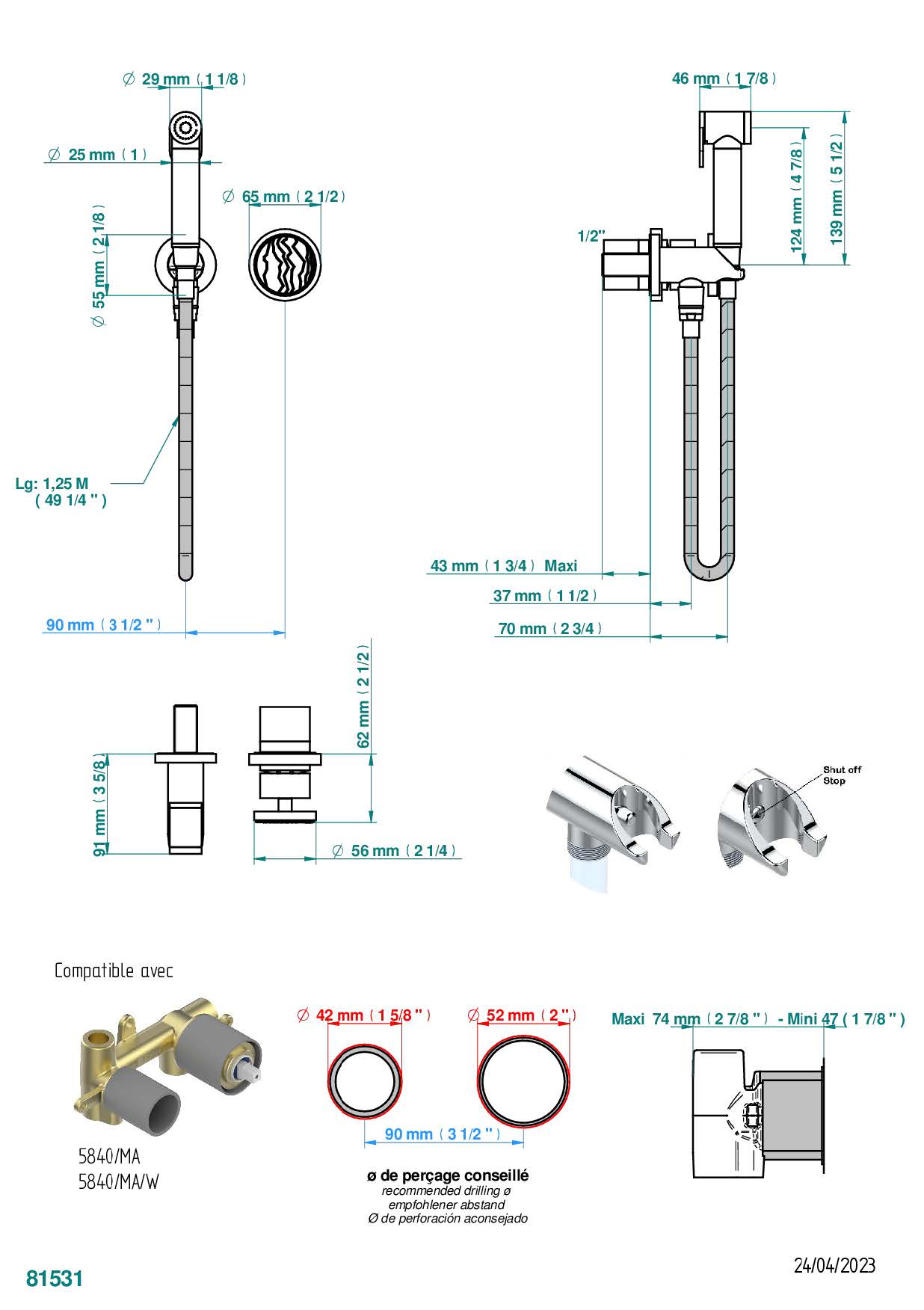 Комплект для душа THG Yoko Ice, включающий смеситель, армированный шланг 1 м 25 см, ручной душ с курковым распылителем, выход из стены и предохранительный запорный клапан
