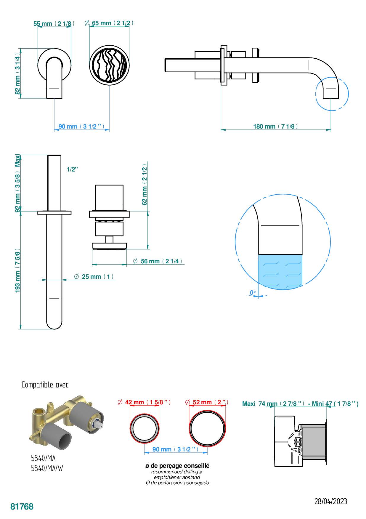 Комплект отделки для встраиваемого смесителя THG Yoko Ice для раковины с изливом, без слива