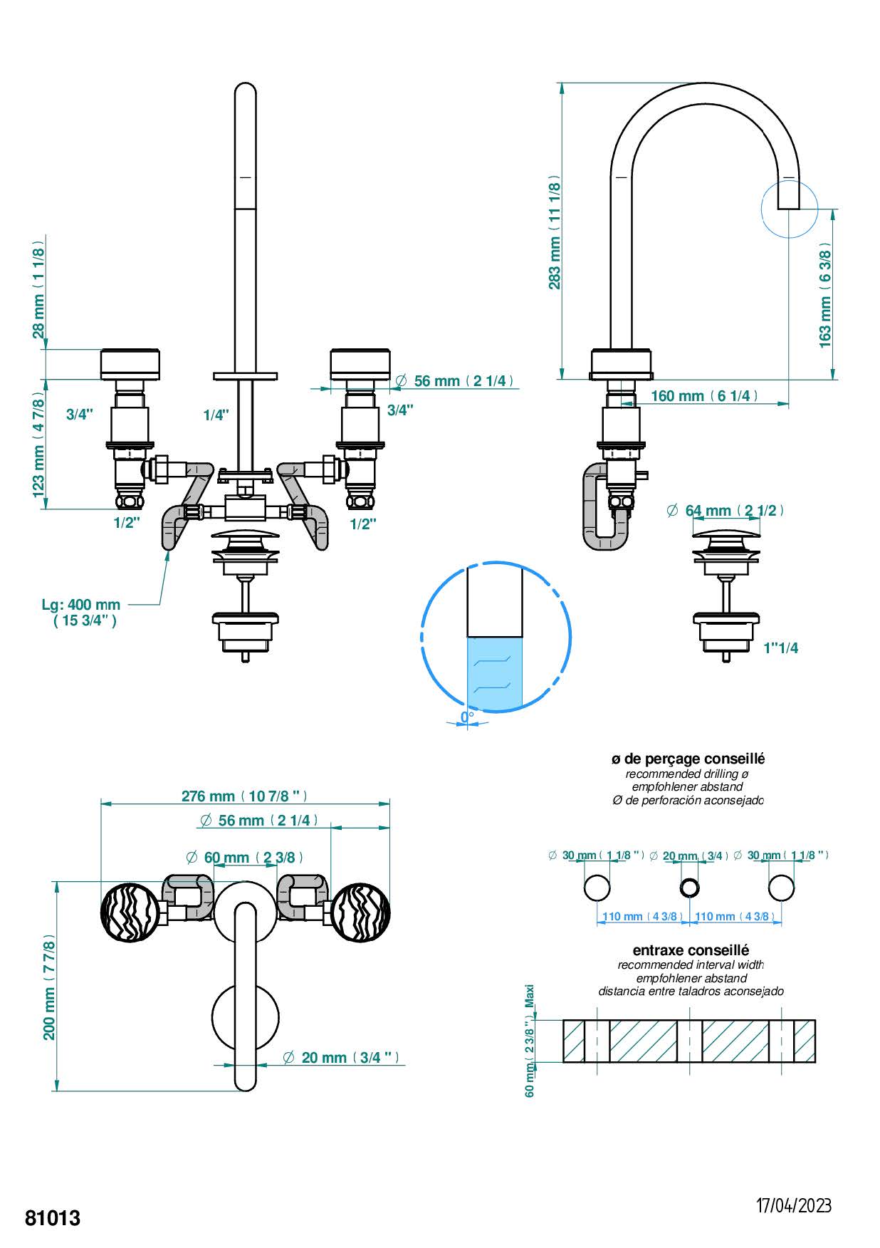 Смеситель для раковины THG Yoko Ice на три отверстия устанавливаемый на борту с донным клапаном коллекции Смесители THG Yoko Ice можно купить по розничной цене в нашем шоу-руме в Москве по адресу ул. Дениса Давыдова, д. 4 или через наш интернет-магазин StudioArdo.