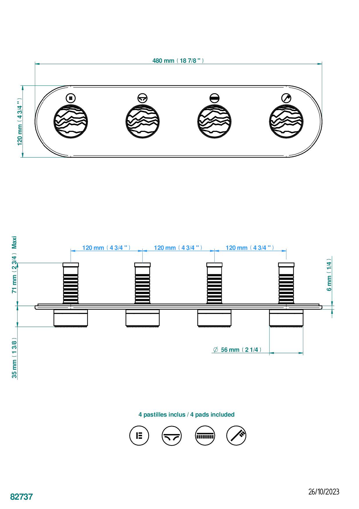Термостат THG Yoko Ice Комплект отделки для 4 настенных вентилей на монтажной пластине