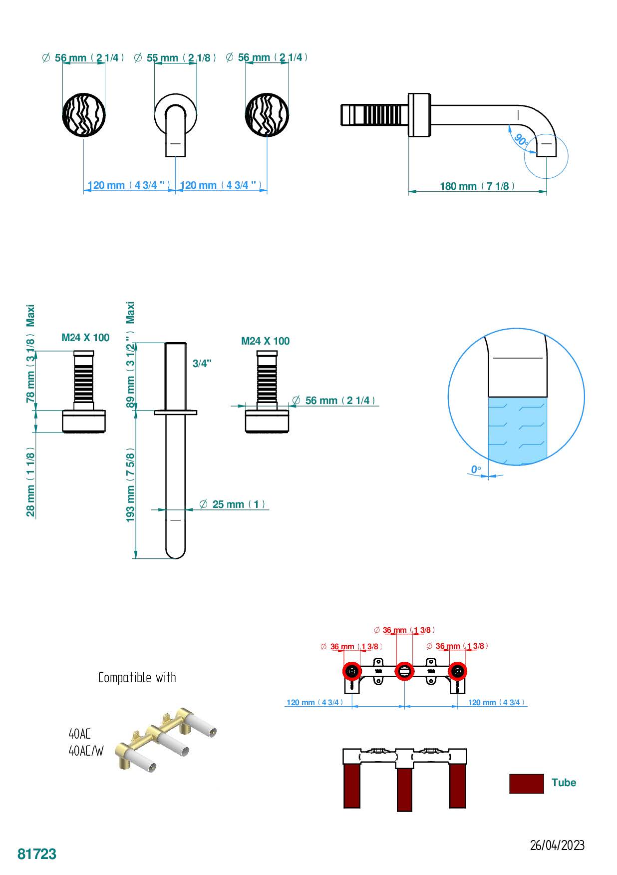 Внешняя часть смесителя THG Yoko Ice встраиваемого в стену для ванны на три отверстия с изливом ГОЛИАФ