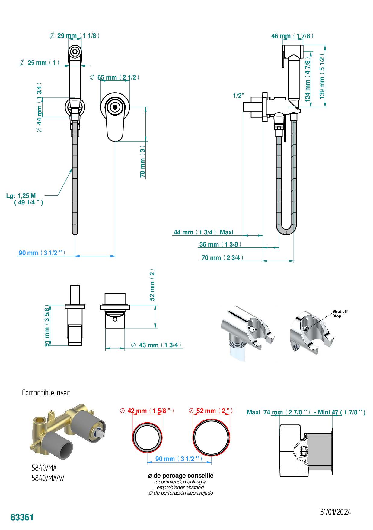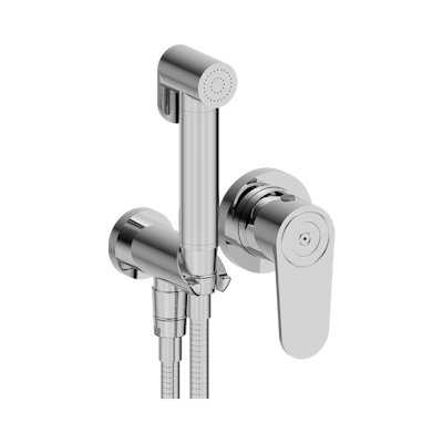 Комплект для душа THG Zoom.5, включающий смеситель, армированный шланг 1 м 25 см, ручной душ с курковым распылителем, выход из стены и предохранительный запорный клапан