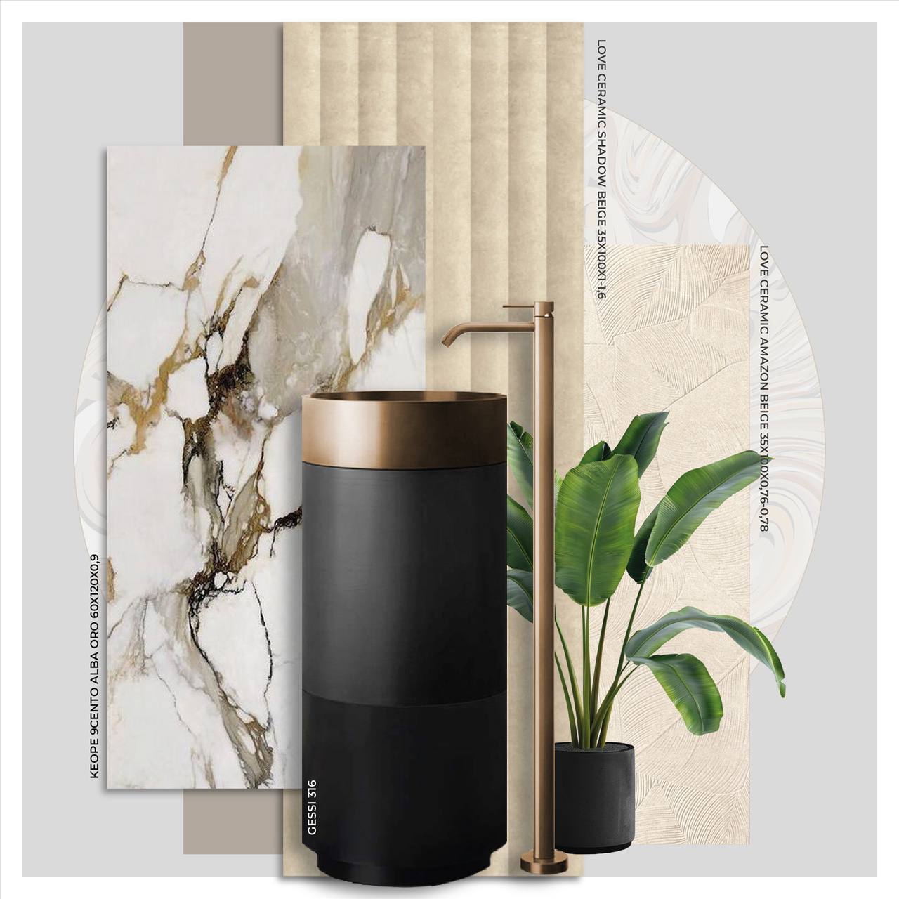 Коллаж с керамогранитом Keope и сантехникой Gessi