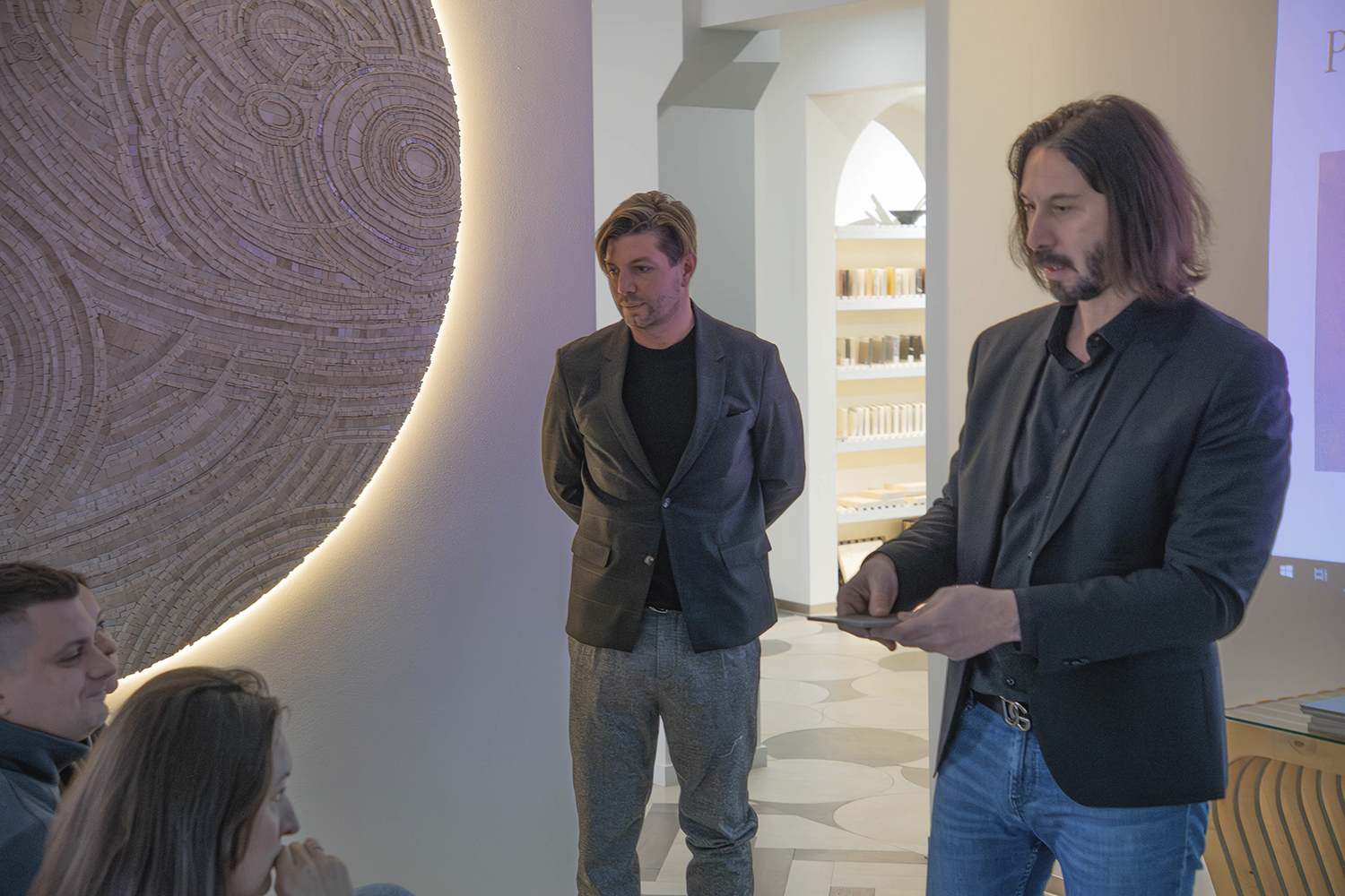 Недавно в ARDO STUDIO прошёл бранч с INFINITI, брендом крупноформатного керамогранита для премиальных интерьеров. Встречу вели Луиджи Корбелли, директор INFINITI, и Марко Полимени - они показали, как работать с большими форматами в реальных проектах: раскладка, стыковка листов, сложные узлы в ванных, гостиных и общественных пространствах.